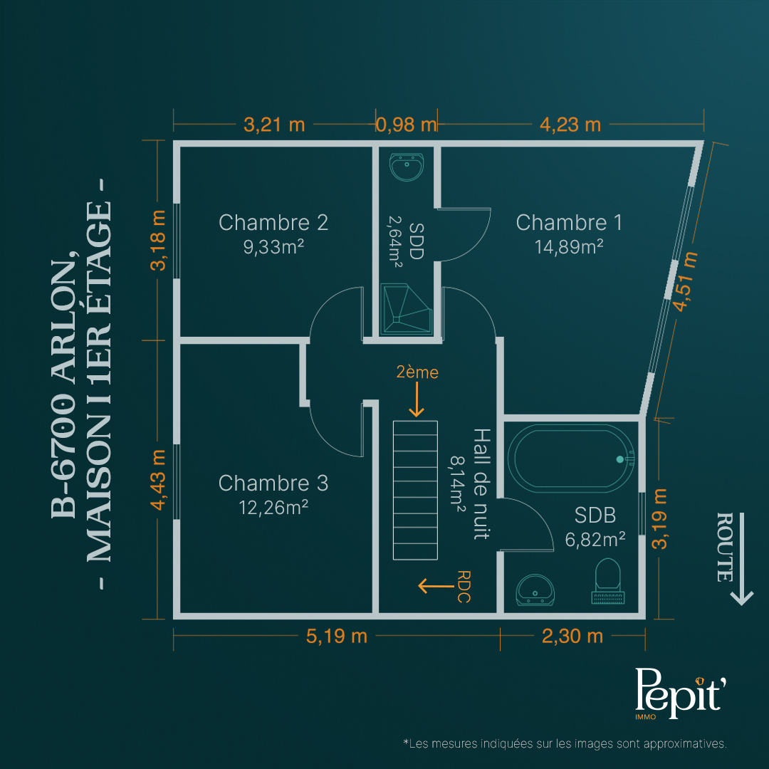 - Salle de douche:2.64 m2