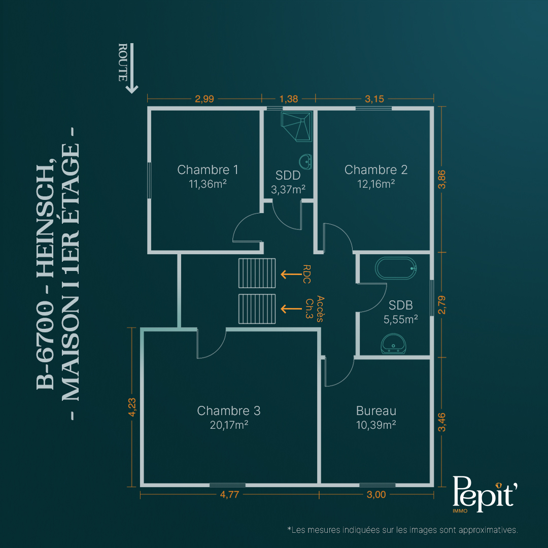 À l'étage, vous attendent 3 chambres, une salle-de-douche ainsi qu'une salle-de-bain avec WC !