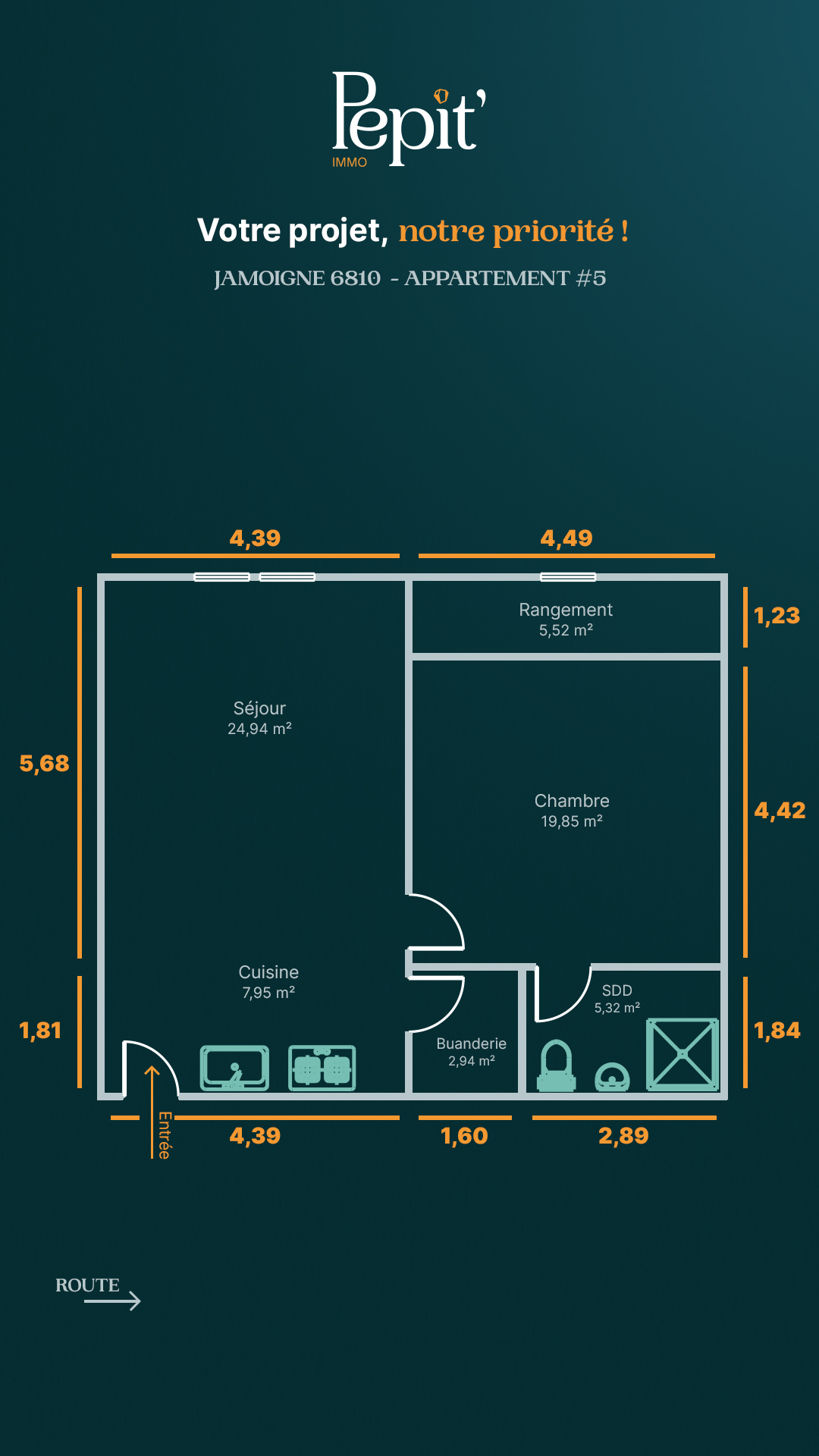 - Hall d'entrée:24.94 m2