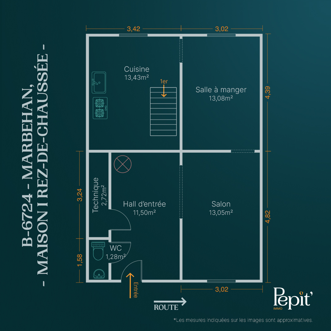 - Cuisine équipée:13.43 m2