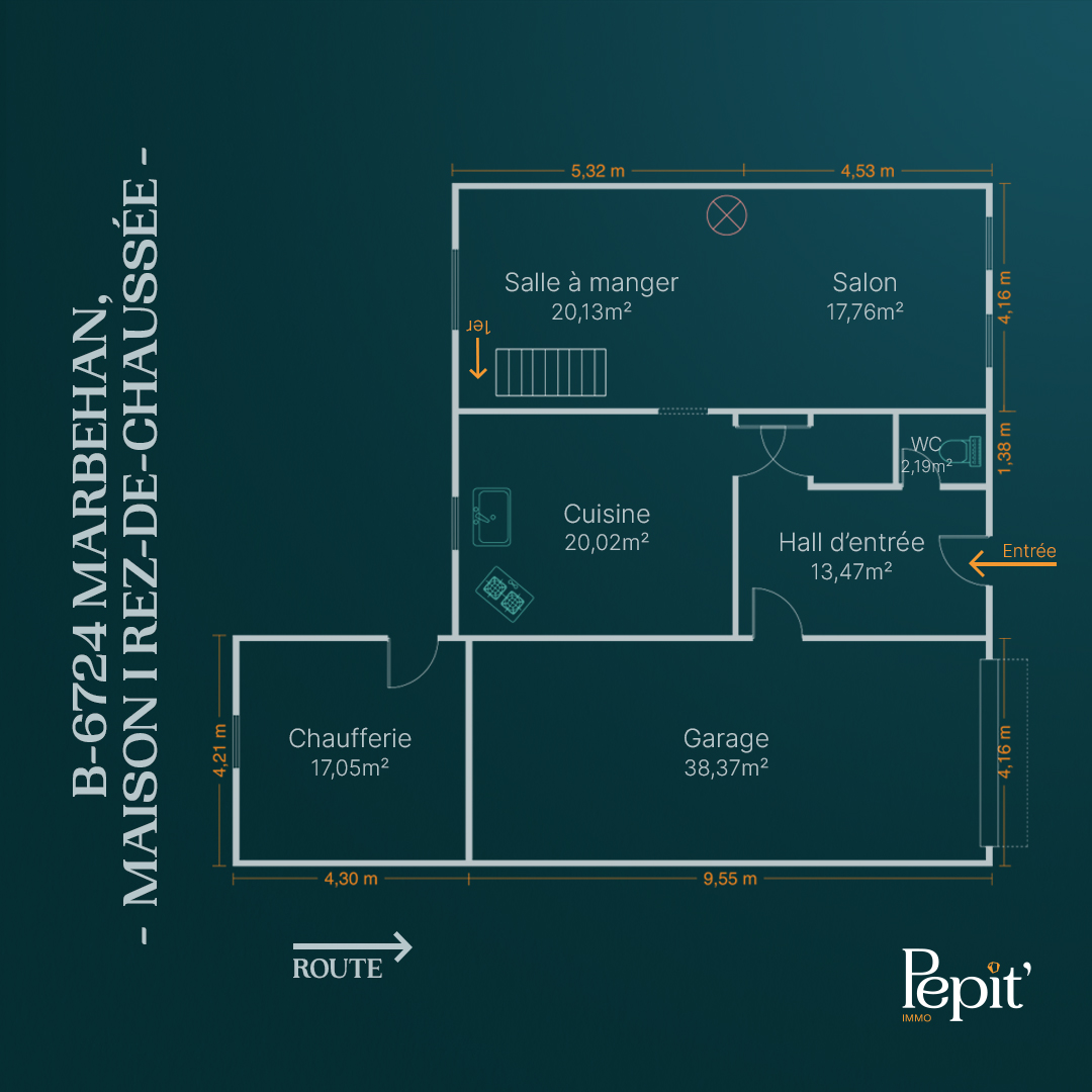 - Hall d'entrée:13.47 m2