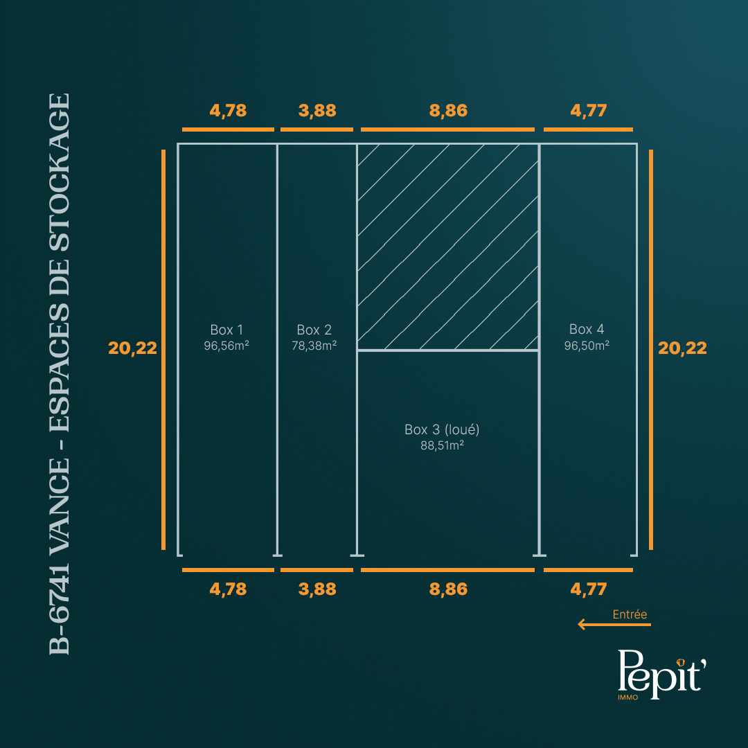 L'agence immobilière Pepit-immo vous présente un spacieux espace de stockage pouvant accueillir divers types de projets d'entreposage dans le village de Vance (Etalle) !