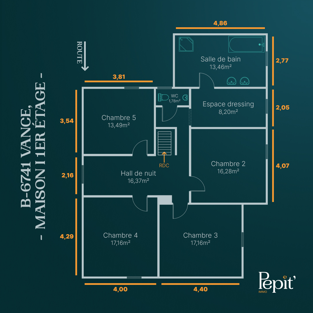 - Hall de nuit:16.37 m2